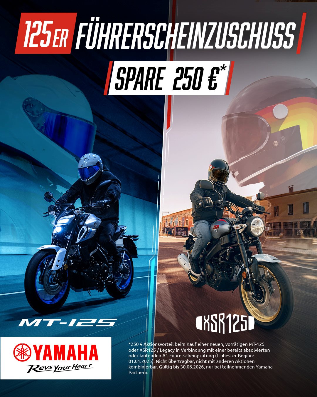MT-125 oder XSR125 / Legacy entscheidest, sicherst Du dir einen attraktiven Führerscheinzuschuss in Höhe von 250 €